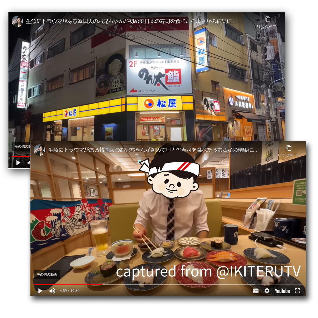 ※キャプチャ画像はIKITERUTV「生魚にトラウマのある韓国人のお兄ちゃんが初めて日本の寿司を食べたらまさかの結果に…」から拝借しました。